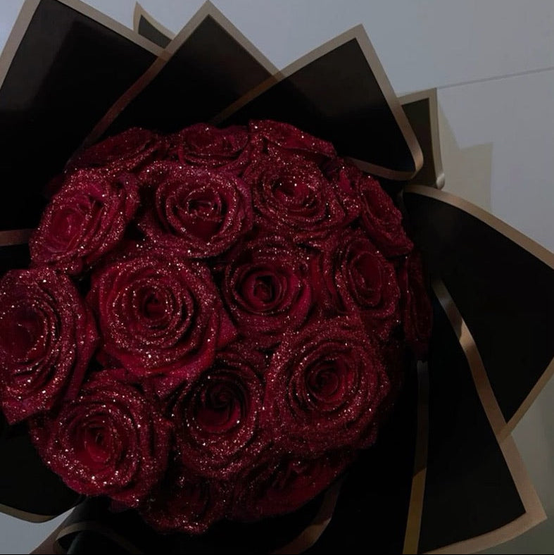 This captivating bouquet of Glitter Roses shimmers with elegance, creating a bold and unforgettable expression of affection.